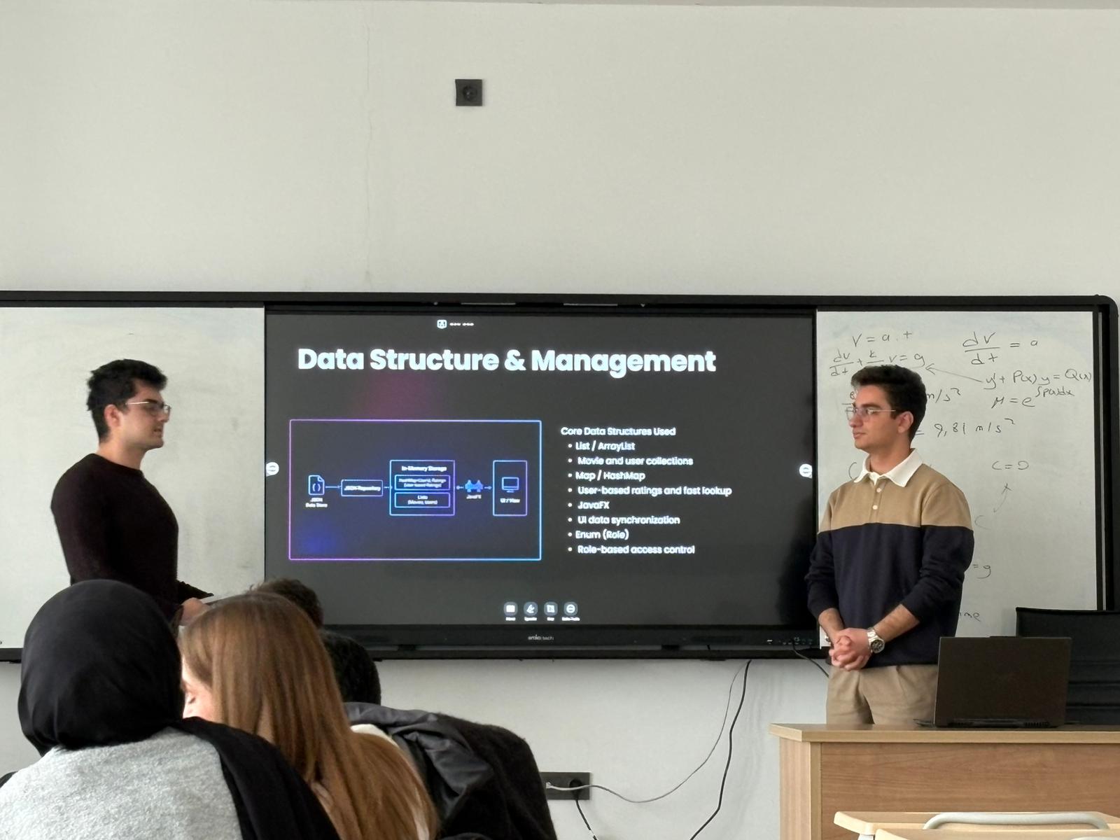 Bilgisayar Mühendisliği Bölümü 2. sınıf öğrencileri, bu dönem Nesne Yönelimli Programlama (Object-Oriented Programming) ve Veri Yapıları (Data Structures) derslerini kapsayan modül proje sunumlarını başarıyla gerçekleştirdi. Dönem boyunca edindikleri teorik bilgileri uygulamaya dönüştüren öğrenciler, hazırladıkları projeleri Doç.Dr. Farhan Aadil ve Dr.Öğr. Üyesi Rezan Bakır hocalarımız önünde sundu. Modül projeleri sayesinde öğrenciler, takım çalışması, proje yönetimi ve teknik sunum yapma konularında önemli deneyimler kazanırken, yazılım geliştirme süreçlerini uçtan uca ele alma fırsatı buldu. Bu başarılı sunumlar, öğrencilerin ileri seviye yazılım ve mühendislik derslerine sağlam bir altyapıyla ilerlediklerini gösterirken, bölümde verilen uygulama ağırlıklı eğitimin etkisini bir kez daha ortaya koydu.