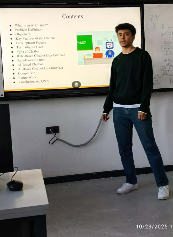 4. Sınıf öğrencileri, yıl boyunca hazırladıkları bitirme projelerini 1. sınıf öğrencilerine sunarak arkadaşlarına örnek oldular. Etkinlikte öğrenciler hem öğrendiklerini paylaştı hem de yeni başlayanlara ilham verdi.