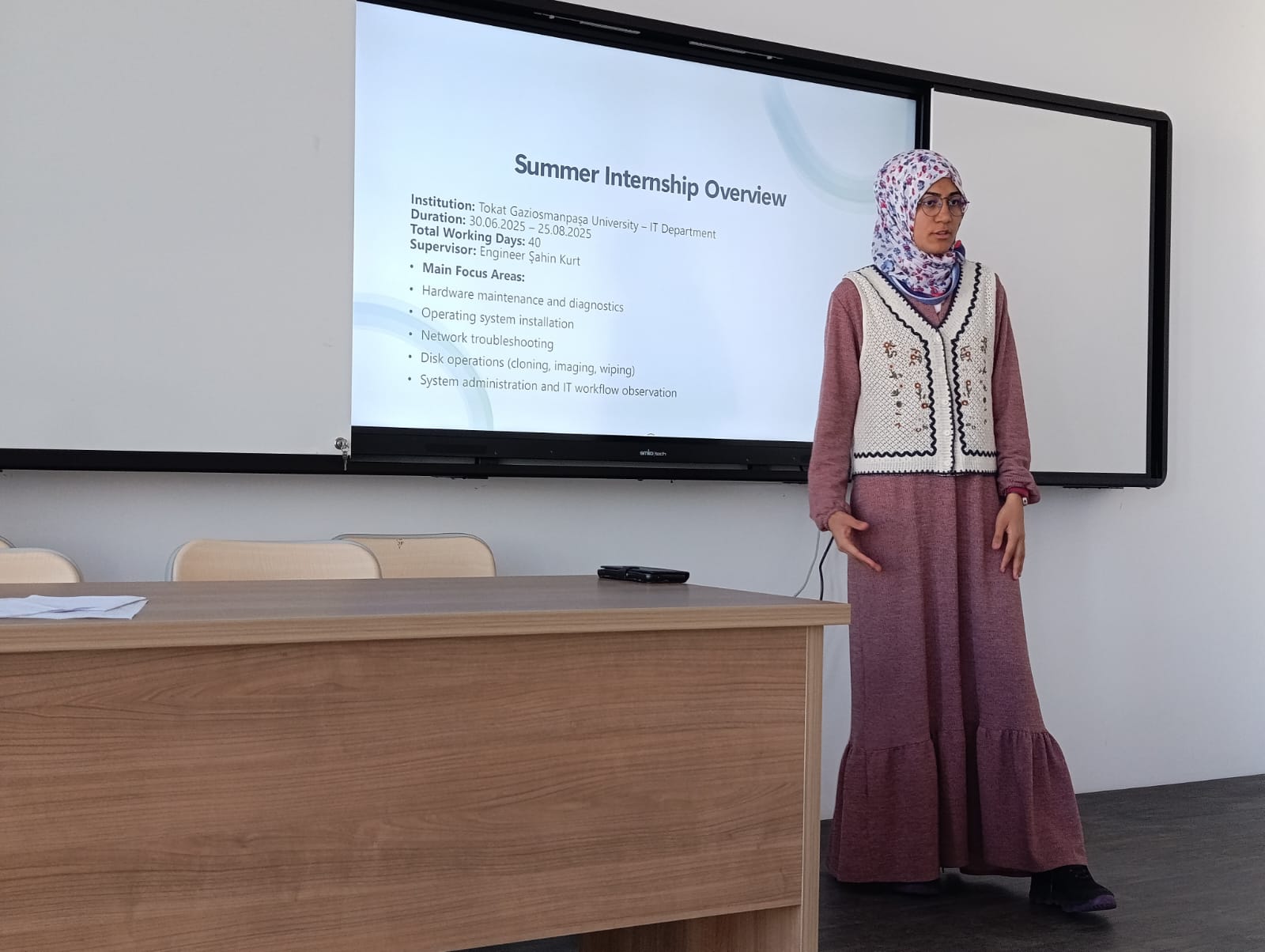 Bilgisayar Mühendisliği Bölümü öğrencileri, 2025 yılı Yaz Stajı kapsamında gerçekleştirdikleri çalışmaların sunumlarını başarıyla tamamladı. Her öğrenci, staj sürecinde yer aldığı projeleri, karşılaştığı teknik sorunları ve bu sorunlara geliştirdiği çözümleri ayrıntılı biçimde anlattı. Öğretim üyeleri, öğrencilerin sektörle ilk temaslarını gerçekleştirdikleri bu sürecin mesleki gelişimleri açısından büyük önem taşıdığını vurgulayarak etkinliğin verimli geçtiğini ifade etti. Program, değerlendirmelerin ardından sona erdi.