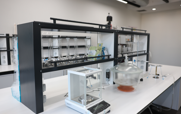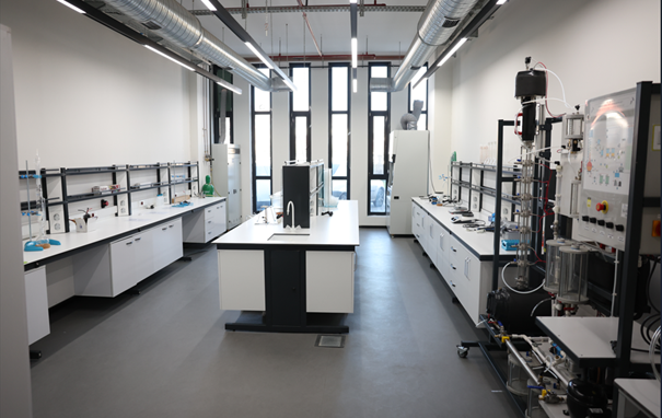 Laboratuvar; çözelti hazırlamadan titrasyona, fiziksel ölçüm tekniklerinden kimya mühendisliğine özgü reaktör, distilasyon ve akış sistemlerine kadar geniş bir çalışma altyapısına sahiptir.